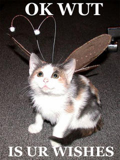 Fairy cat demands to know your wishes.